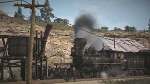 Trains run through most of the territory, from Big Valley in the west to Annesburg in the east, except in the South-Westward of the map. While the runway line betwixt Bridegroom Signal, Armadillo, and MacFarlane'south Ranch in New Austin exists, no passenger trains run and tickets can't be purchased, merely cargo trains will be found running. In West Elizabeth, the rails lines through Alpine Copse and the Great Plains accept even so to be built in 1907.